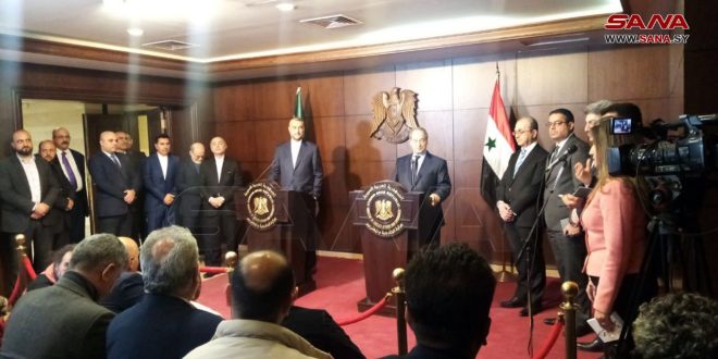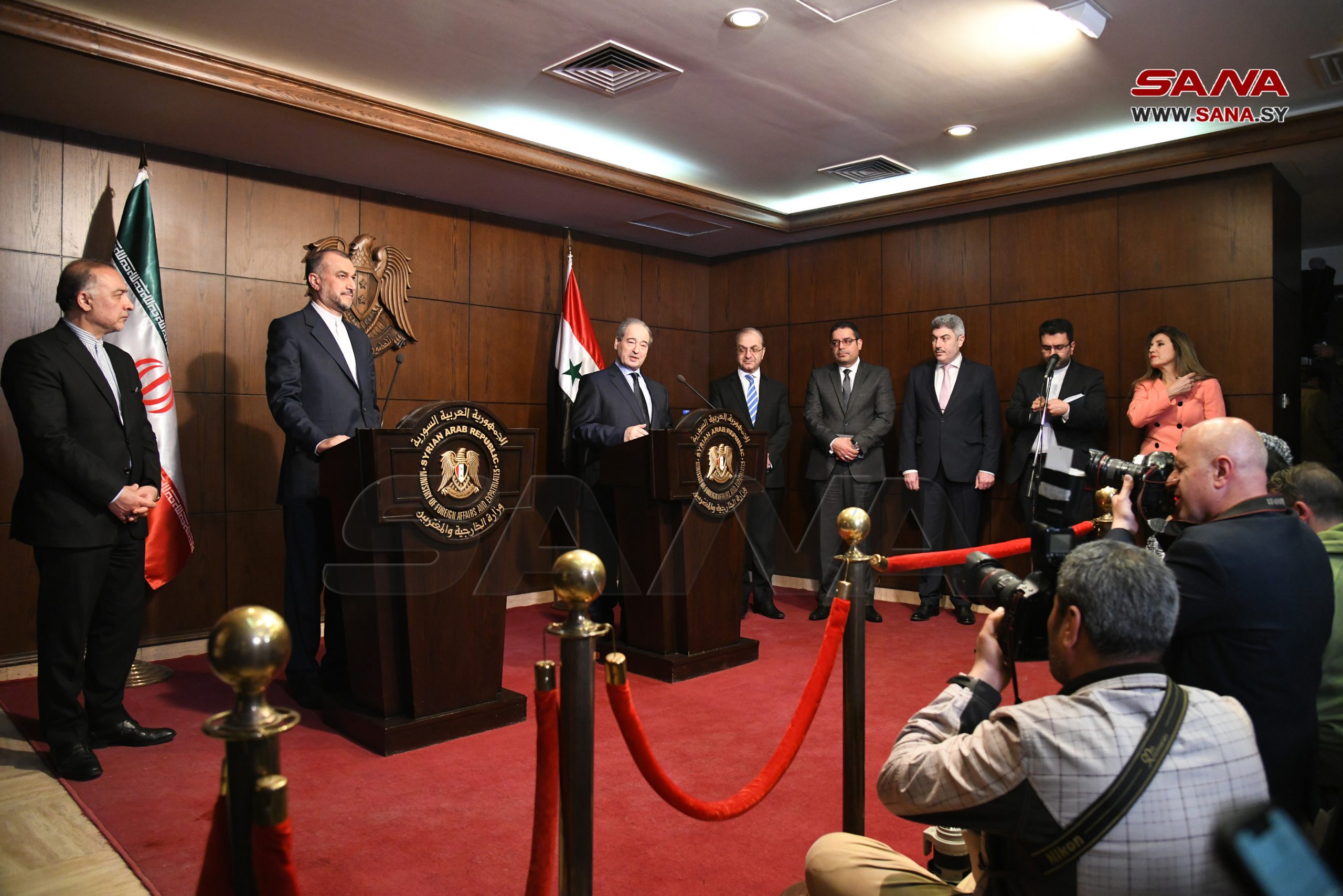 Damasco, 09 mar (SANA) El ministro de Asuntos Exteriores y Expatriados, Faisal Al-Mekdad, celebró hoy en Damasco una conferencia de prensa conjunta con su homólogo iraní, Hussein Amir Abdollahian, donde Al-Mekdad confirmó que las posiciones de ambos países sobre asuntos regionales e internacionales son idénticas.