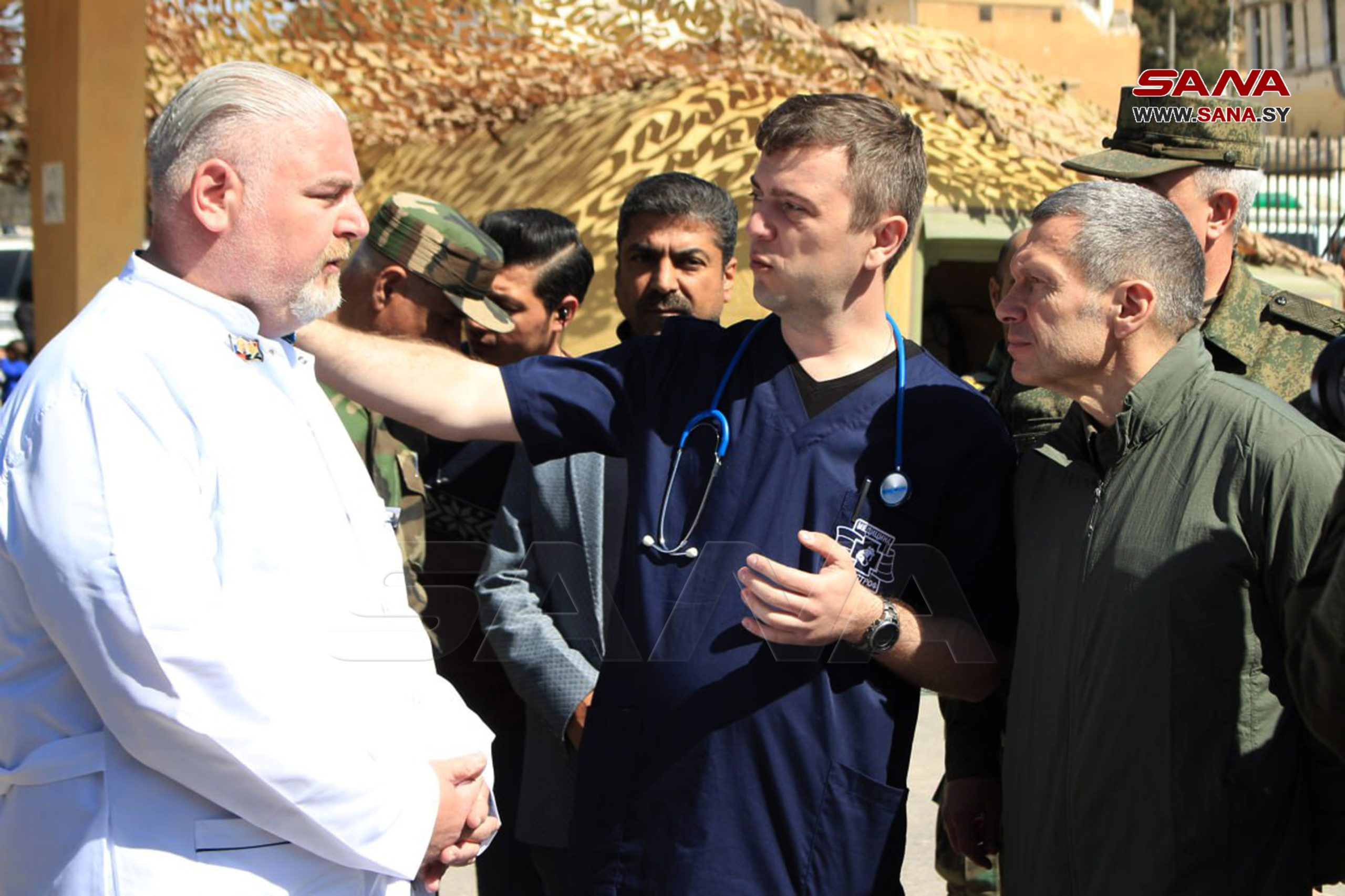 El supervisor de la delegación médica en el hospital de campaña ruso, Vladimir Solovyov, dijo que la misión de este puesto médico es brindar servicios médicos y de primeros auxilios a todos los damnificados, además de entregarles medicinas gratuitas.