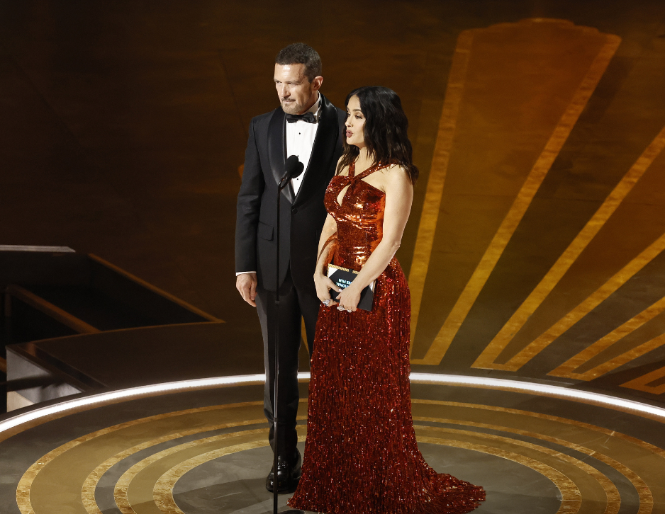 La artista fue invitada para presentar la categoría de Mejor Película Internacional, al lado del español Antonio Banderas, quien a lo largo de los años se ha convertido en uno de sus amigos más cercanos.