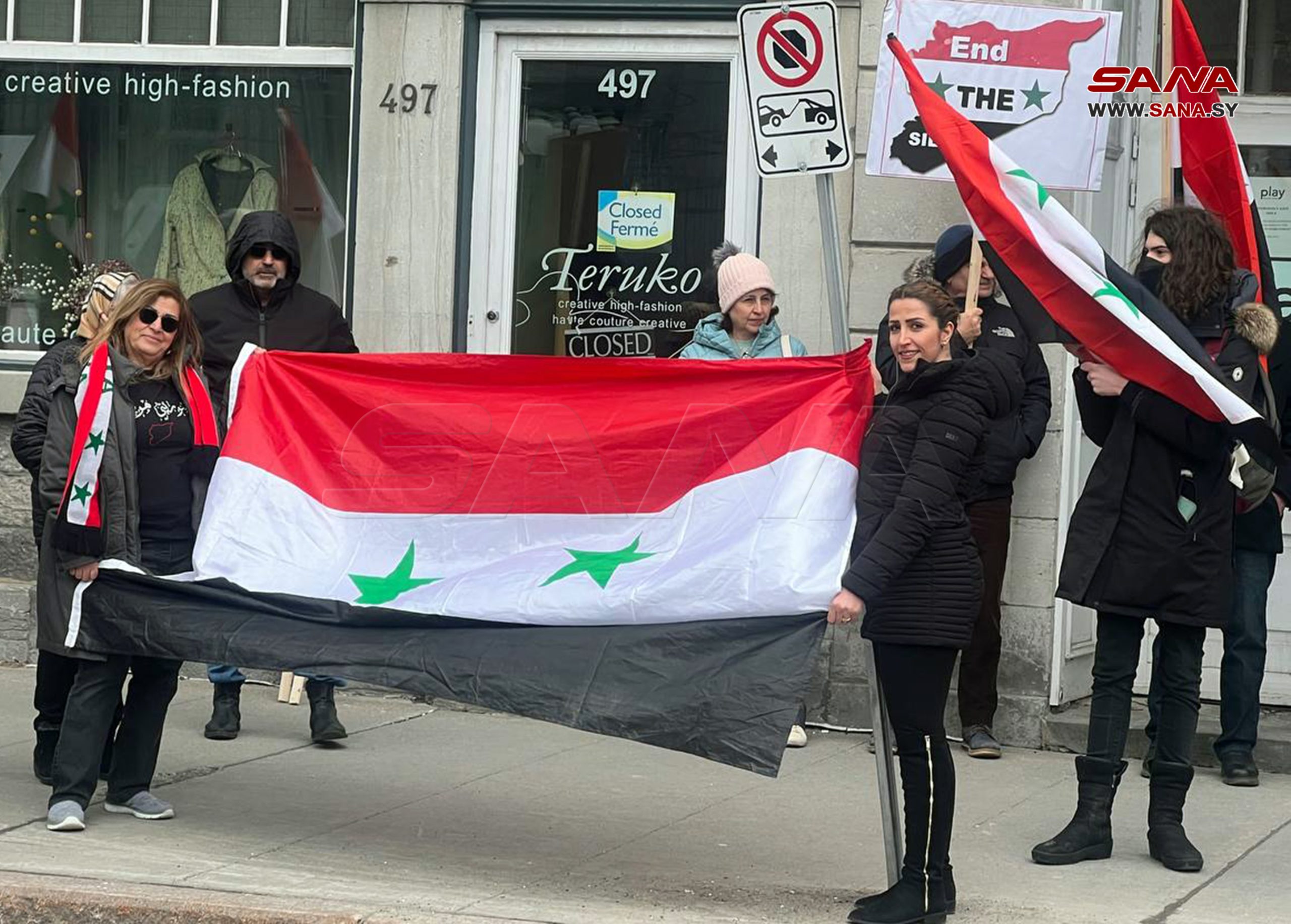 Un acto de solidaridad con Siria frente al bloqueo tuvo lugar hoy frente a la sede de la Embajada de Estados Unidos en la ciudad de Ottawa, la capital canadiense.