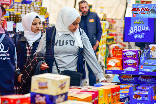 Damasco, 30 mar (SANA) Varias empresas nacionales participan en el Mercado Benéfico de Ramadán que organiza la Gobernación de Damasco en cooperación con la Asociación “Nour” de Fomento y Ayuda, en el Campamento de Refugiados Palestinos de Yarmouk, al sur de esta capital.