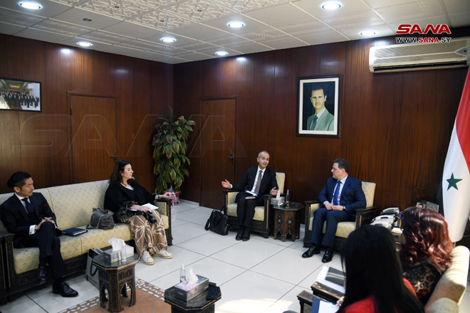 Damasco, 5 abr (SANA) El ministro de Obras Públicas y Vivienda, Suhail Abdel Latif, recibió hoy al jefe de la Dirección Ejecutiva del Programa de las Naciones Unidas para los Asentamientos Humanos, Irfan Ali.