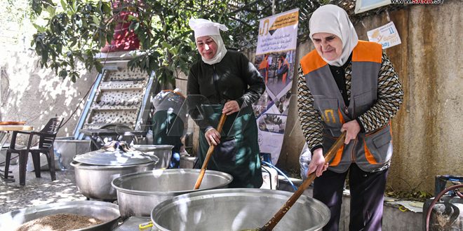 Damaco, 08 abr (SANA) Durante el sagrado mes de Ramdán, los residentes del barrio Al-Amara en la capital Damasco participan en la iniciativa “Sakbet Ramadán” mediante la preparación y distribución de comidas a familias necesitadas.