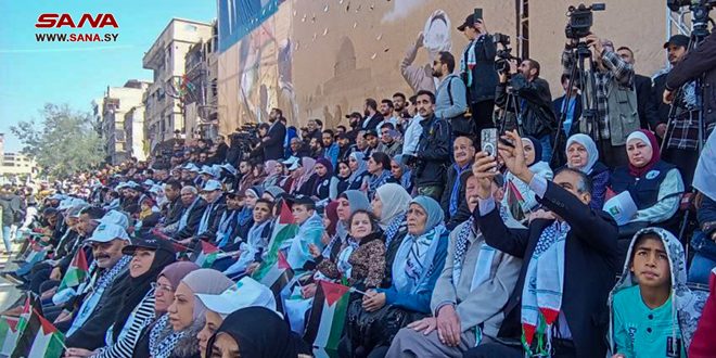 Al acto asisten figuras oficiales sirias, líderes de partidos y grupos palestinos, líderes religiosos y representantes de misiones diplomáticas acreditadas en Damasco.