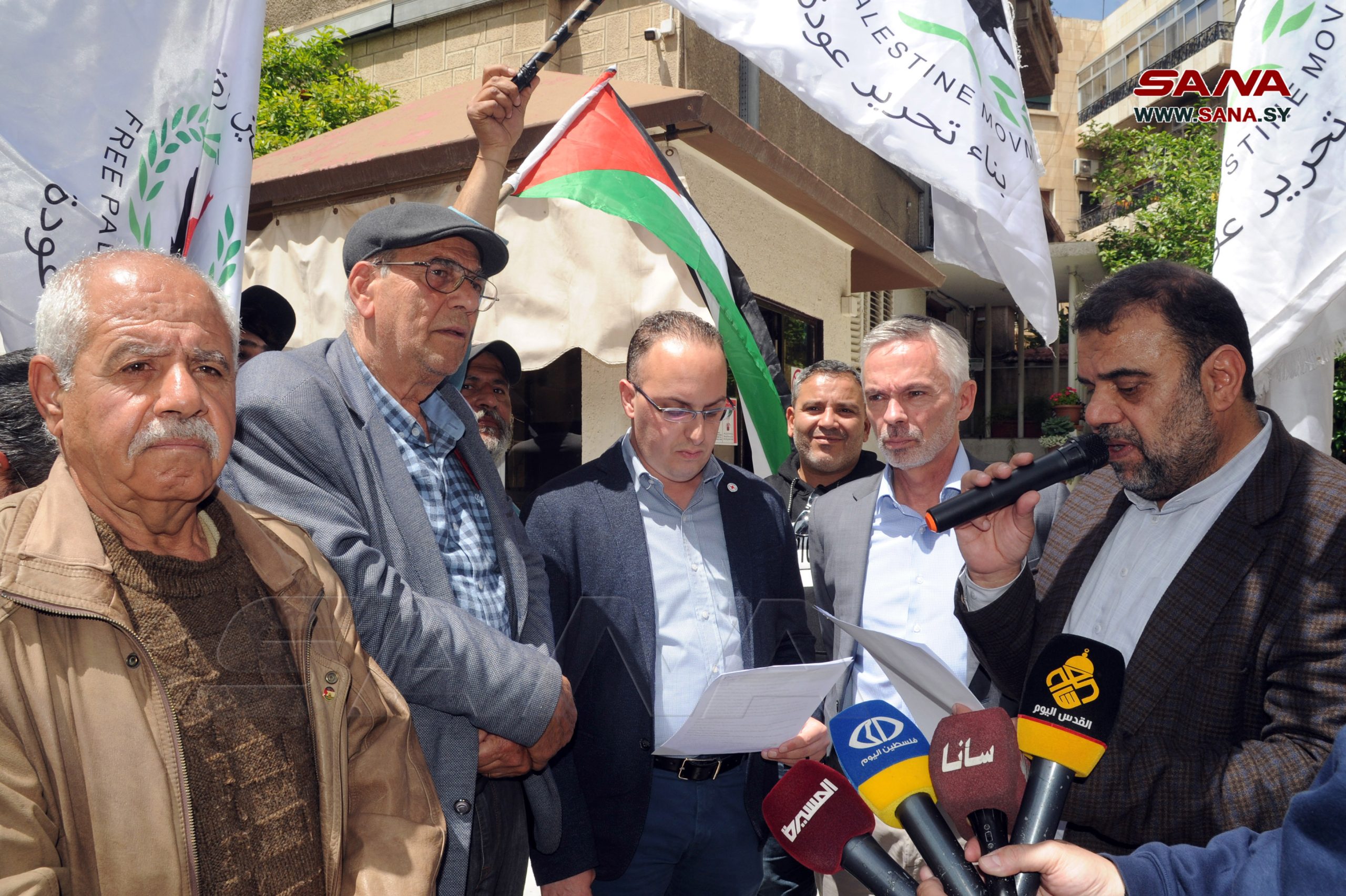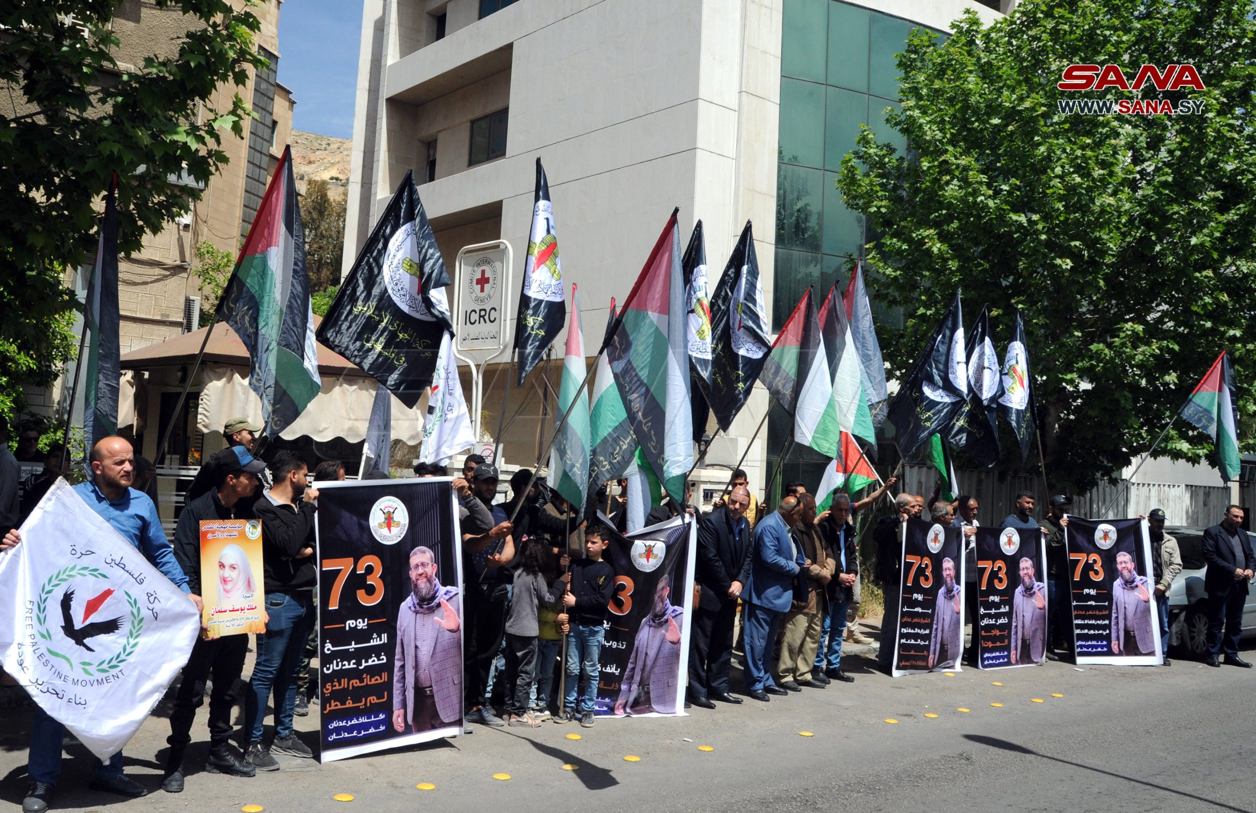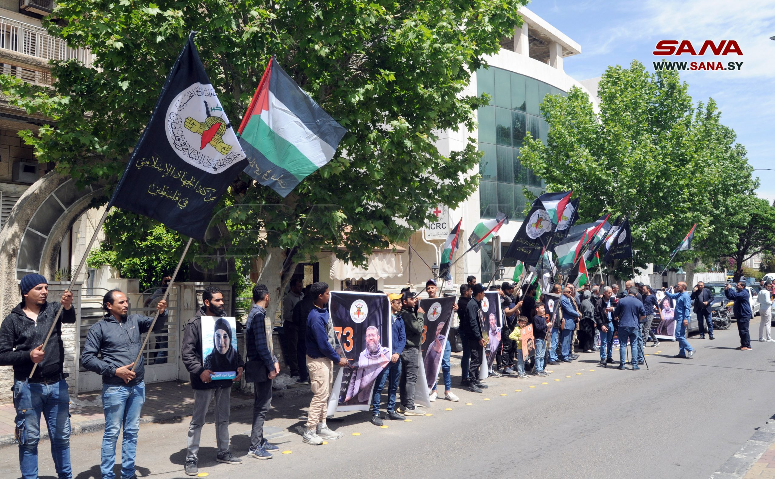 Damasco, 18 abr (SANA) El Comité de Defensa de los Prisioneros y Detenidos Palestinos en las Cárceles del Ocupante Israelí y las fuerzas de la resistencia palestina convocaron hoy a un acto frente a la sede del Comité Internacional de las Cruz Roja (CICR) en Damasco, en apoyo a los presos palestinos en las cárceles del ocupante israelí.