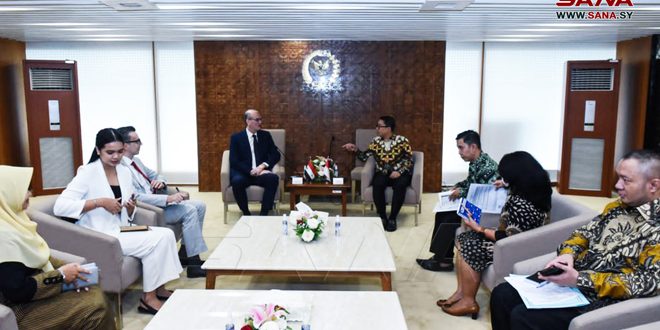 Yakarta, 18 abr (SANA) El embajador de Siria en Yakarta, Abdel Moneim Annan, abordó este martes con el presidente del Comité de Relaciones Exteriores del Parlamento de Indonesia, Fadli Zun, las perspectivas de cooperación interparlamentaria y una serie de temas de interés común.