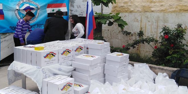 El representante del Centro de Coordinación Ruso, el mayor Alexander Korotkivets, explicó a SANA que la ayuda incluye arroz, azúcar, aceite, harina, té y leche condensada que se distribuyen a los habitantes de la aldea.