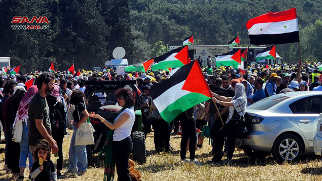A pesar de los intentos de la ocupación israelí de impedir la marcha durante días, la determinación de los palestinos para organizarla ha sido más fuerte, donde miles de personas de Galilea, en el norte y Néguev, en el sur, se concentraron en Laojoun portando banderas palestinas y pancartas en las que escribieron los nombres de las aldeas de las que los palestinos desarmados fueron desplazados a manos de las bandas sionistas durante la catástrofe de la Nakba.