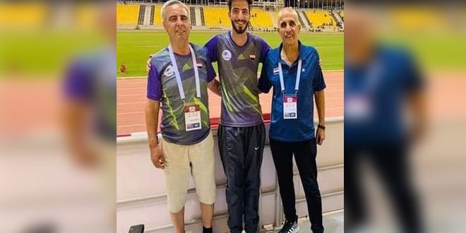 El atleta de la Selección Nacional de atletismo de Siria, Ahmed Al-Bisu, ganó la medalla de bronce en la competición de decatlón en el Campeonato de Asia Occidental para hombres.