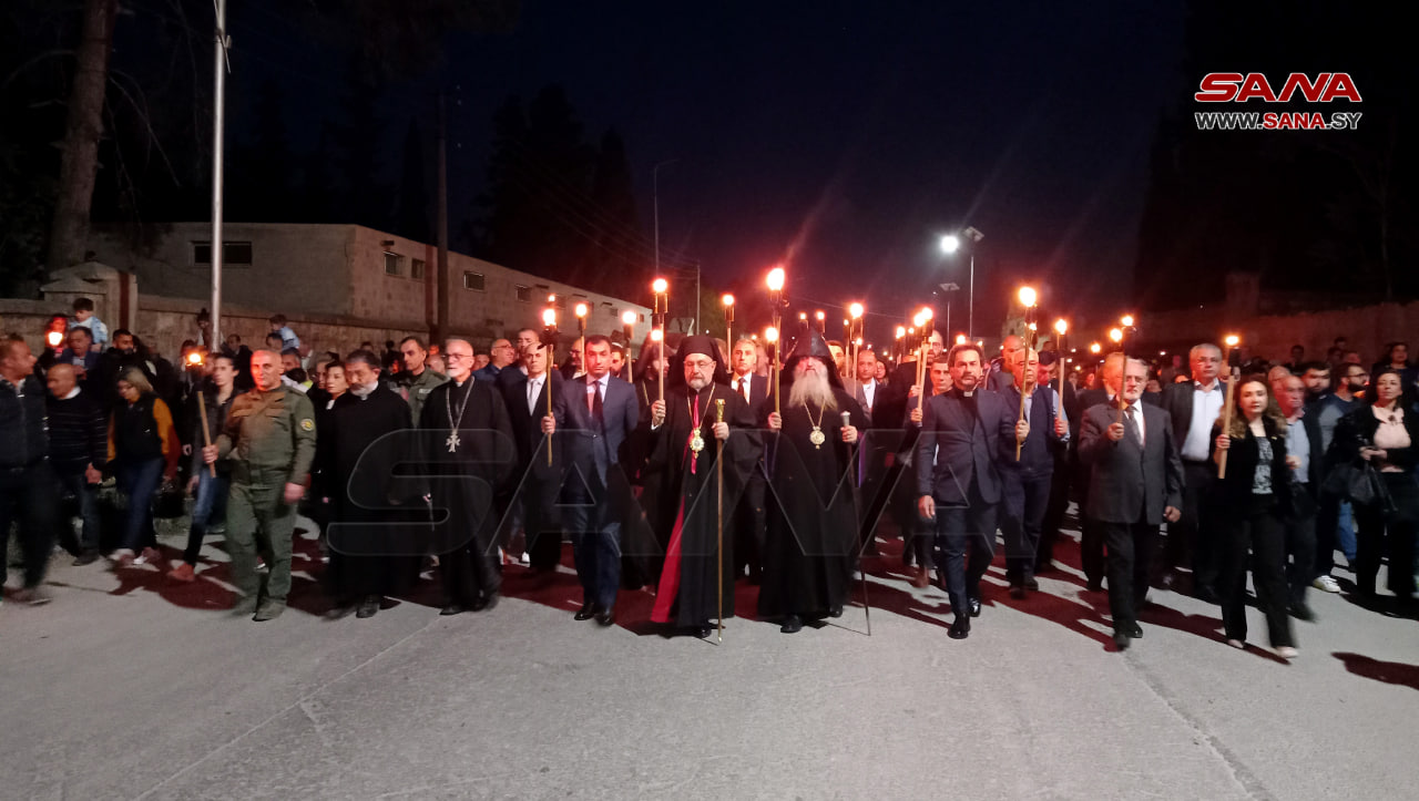 Alepo conmemora el 108 aniversario del Genocidio Armenio con oraciones y procesión con antorchas