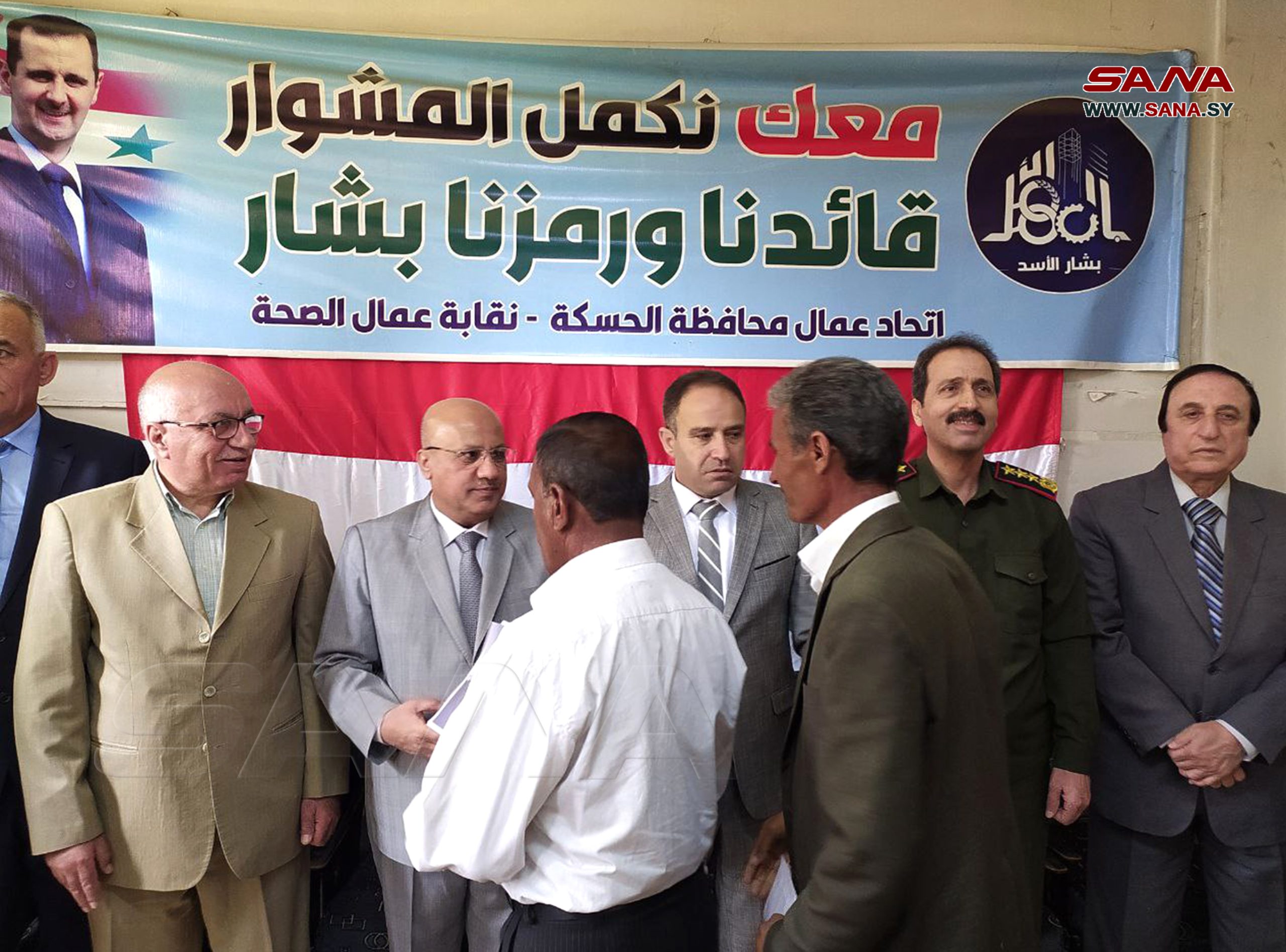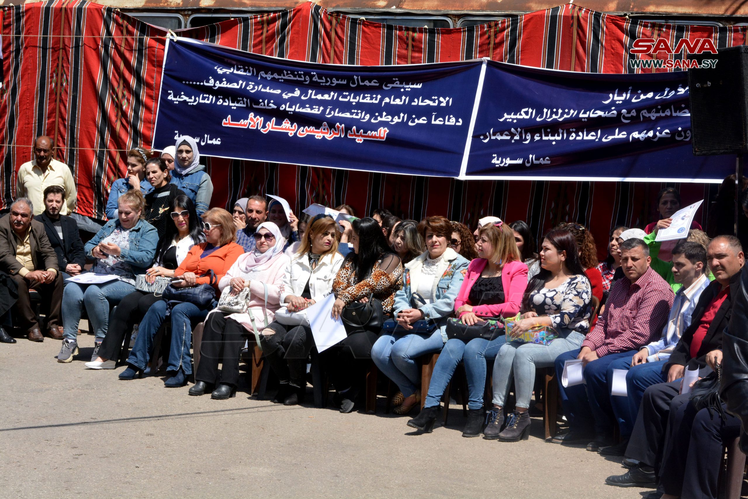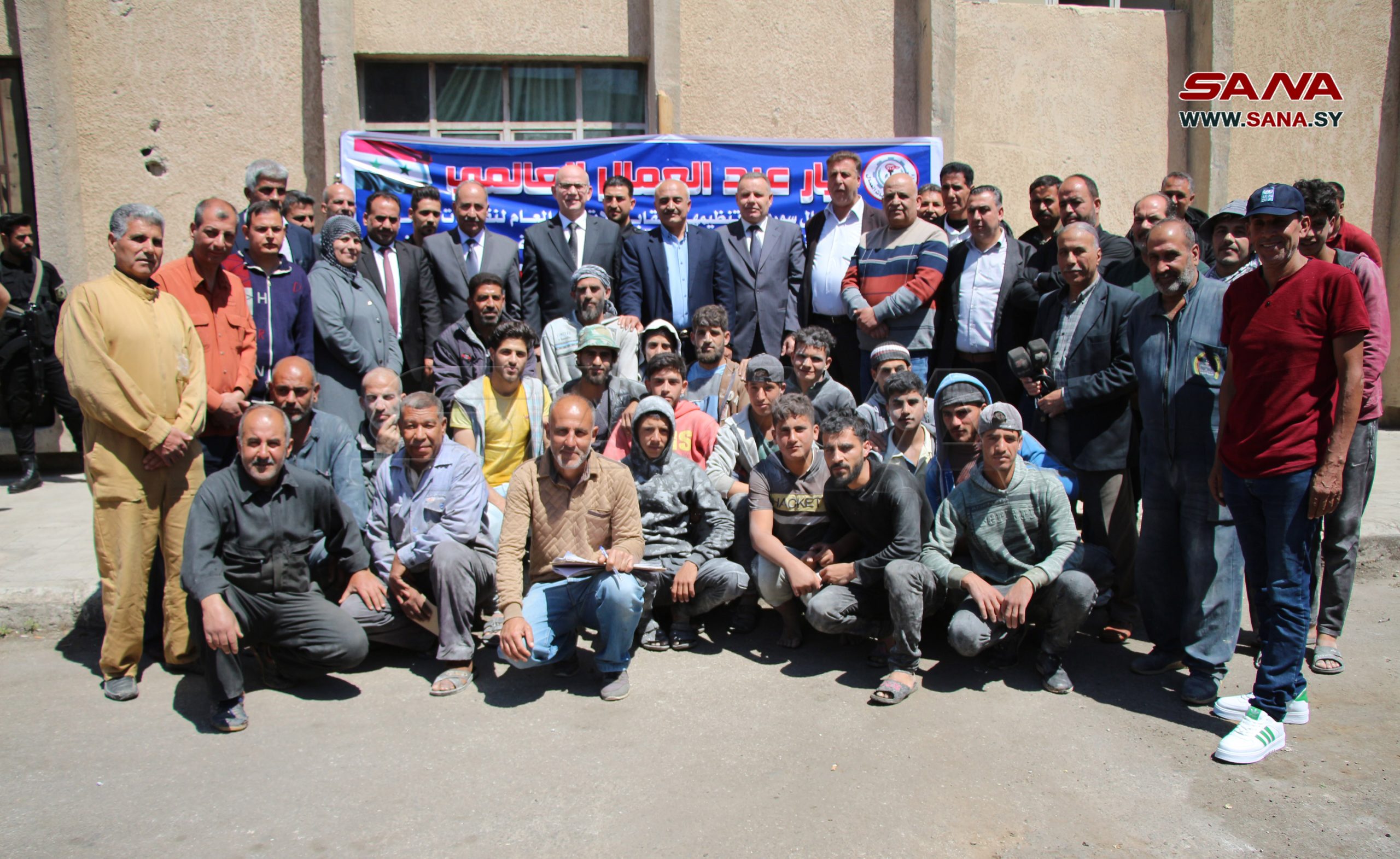 Provincias, 1 may (SANA) Con motivo del Día Internacional de Trabajadores, los sindicatos homenajearon a cientos de trabajadores, entre ellos 500 en la provincia central de Homs.