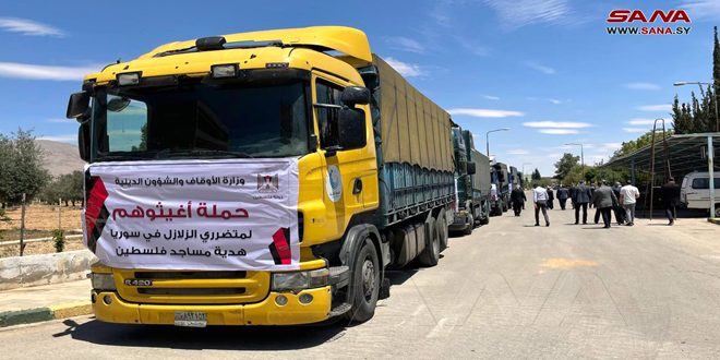 Damasco, 2 may (SANA) El Ministerio de Administración Local y Medio Ambiente de Siria recibió un lote de ayuda humanitaria proporcionada por la Embajada del Estado de Palestina en Damasco.