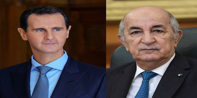 En otra parte de su conversación, los dos mandatarios discutieron la coordinación efectiva y la cooperación de alto nivel entre Siria y Argelia, donde el presidente al-Assad se refirió a las posiciones de apoyo firmes de Argelia al pueblo sirio durante los años de guerra.