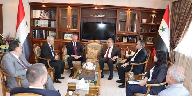 Damasco, 09 may (SANA) El Ministro de Agricultura y Reforma Agraria, Muhammad Hassan Qatana, abordó este martes con el embajador de la República de Bielorrusia en Damasco, Yuri Sloka, los mecanismos para desarrollar la cooperación binacional en materia agrícola y de intercambio de productos.