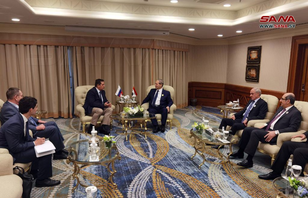 Yeda, 17 may (SANA) El ministro de Relaciones Exteriores y Expatriados, Faisal al-Mekdad, se reunió con el embajador Vladimir Safronkov, enviado especial del Ministerio de Relaciones Exteriores de Rusia para Asuntos de Medio Oriente, al margen de las reuniones preparatorias para la Cumbre Árabe en Yeda.