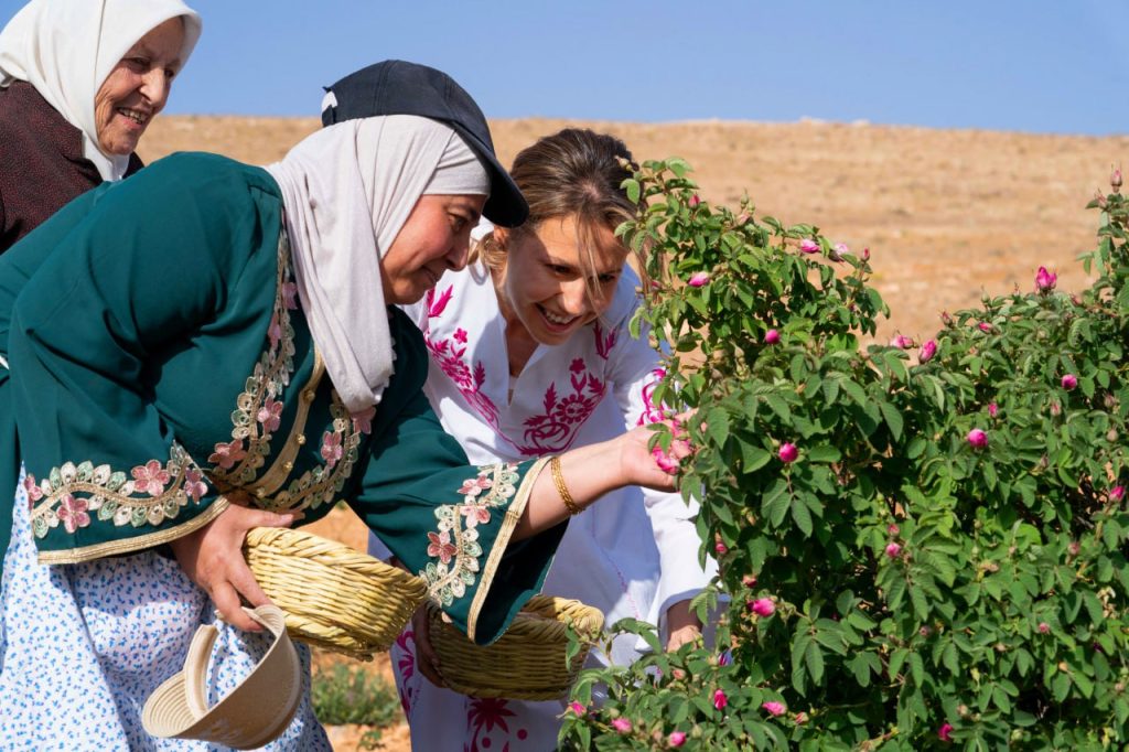Primera Dama comparte con los lugareños de Al-Mrah la cosecha de la Rosa de Damasco