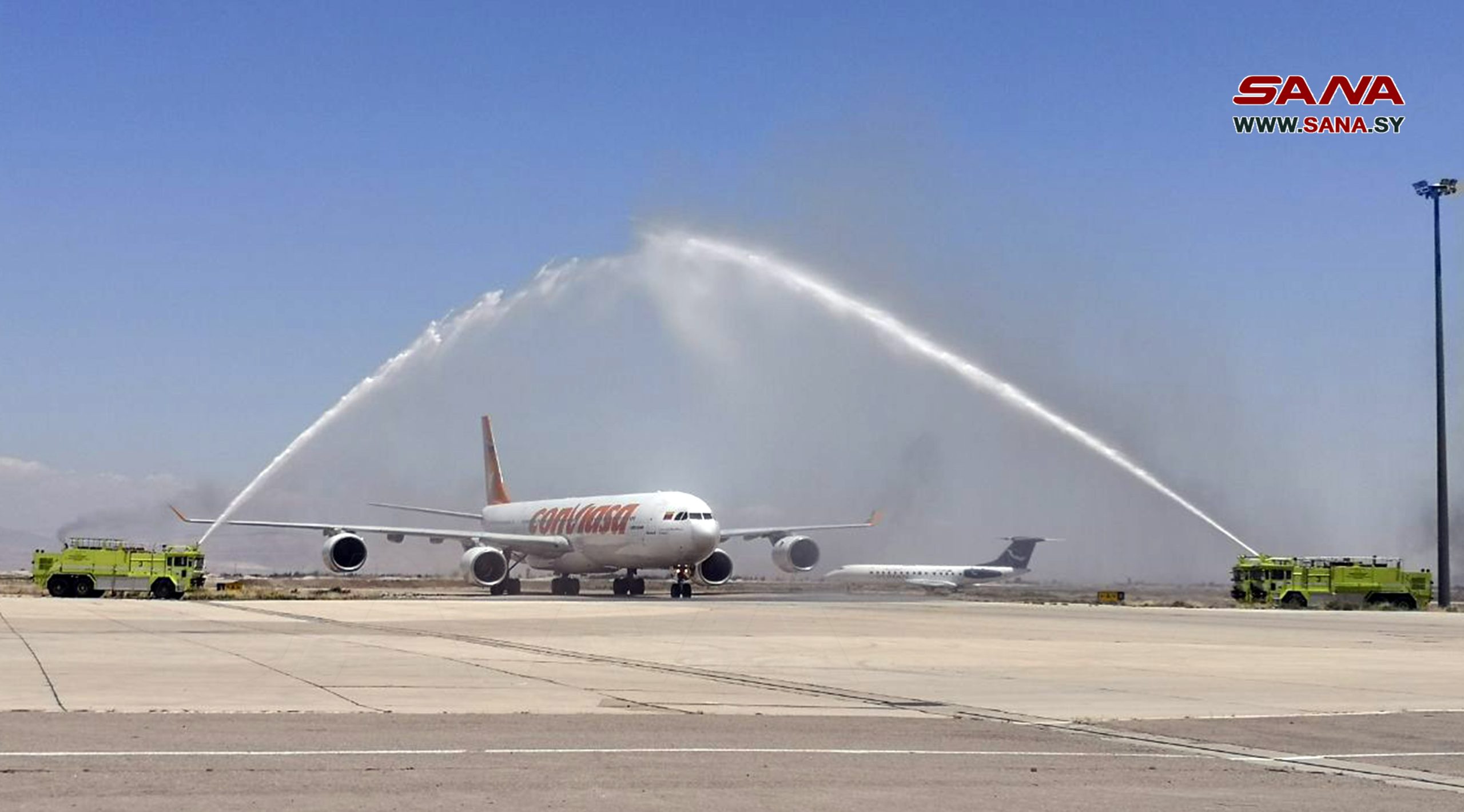 Damasco, 31 may (SANA) Un avión de pasajeros de la aerolínea estatal venezolana CONVIASA aterrizó hoy en el Aeropuerto Internacional de Damasco anunciando la reanudación de los vuelos regulares entre Siria y Venezuela detenidos desde hace 12 años.