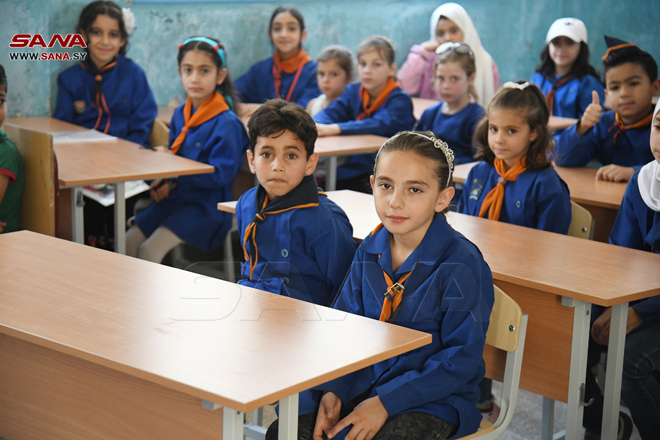 Damasco, 7 jun (SANA) Una delegación rusa, representada por el presidente del Comité de Asuntos Industriales y Comerciales de la Duma Estatal de Rusia, Vladimir Gutinov, entregó artículos escolares en el área de Al-Sayeda Zainab en el campo de Damasco.
