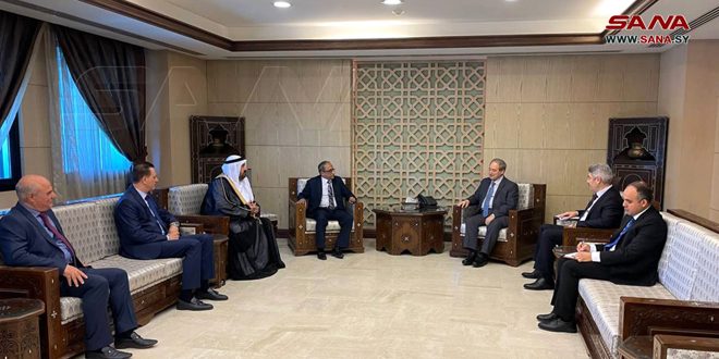 Damasco, 20 jun (SANA) El ministro de Asuntos Exteriores y Expatriados, Faisal Al-Mekdad, recibió este martes al embajador Mohammadi Ahmed Al-Nai, secretario general del el Consejo de Unidad Económica Árabe y la delegación acompañante.