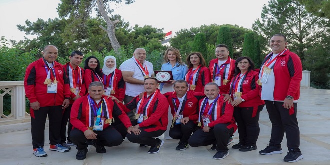 Damasco, 27 jun (SANA) La primera dama Asma Al-Assad, recibió hoy a los medallistas sirios en los Juegos Paralímpicos, que tuvieron lugar recientemente en Berlín, Alemania.