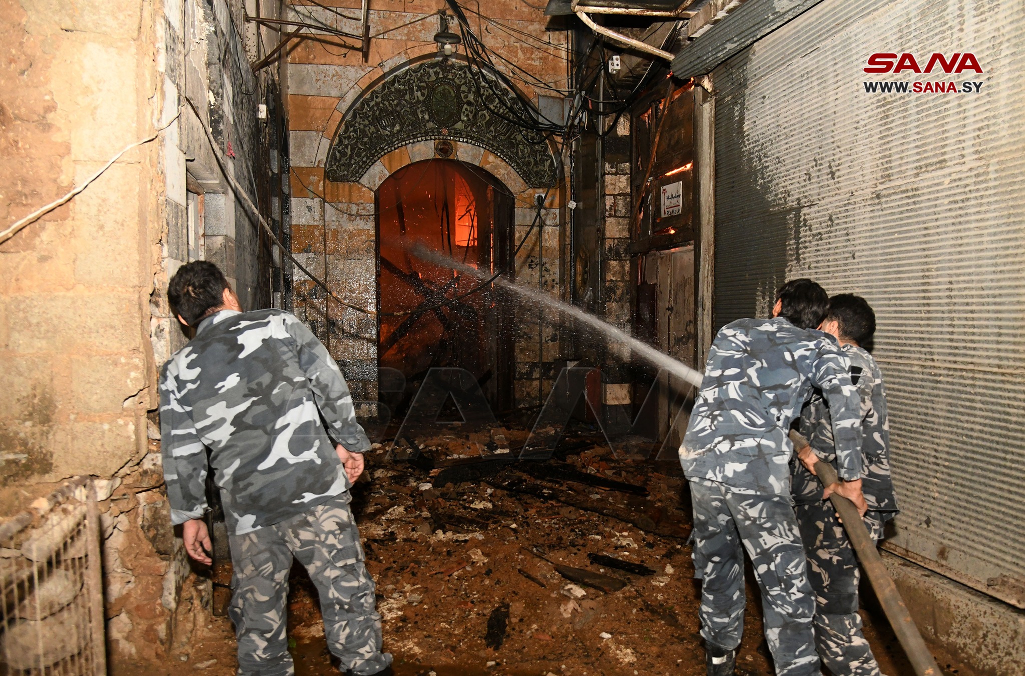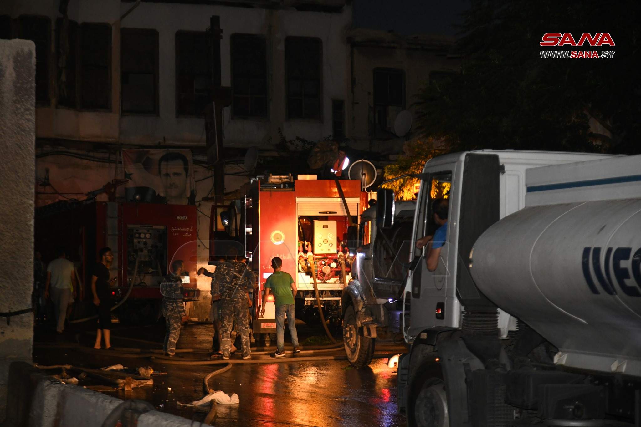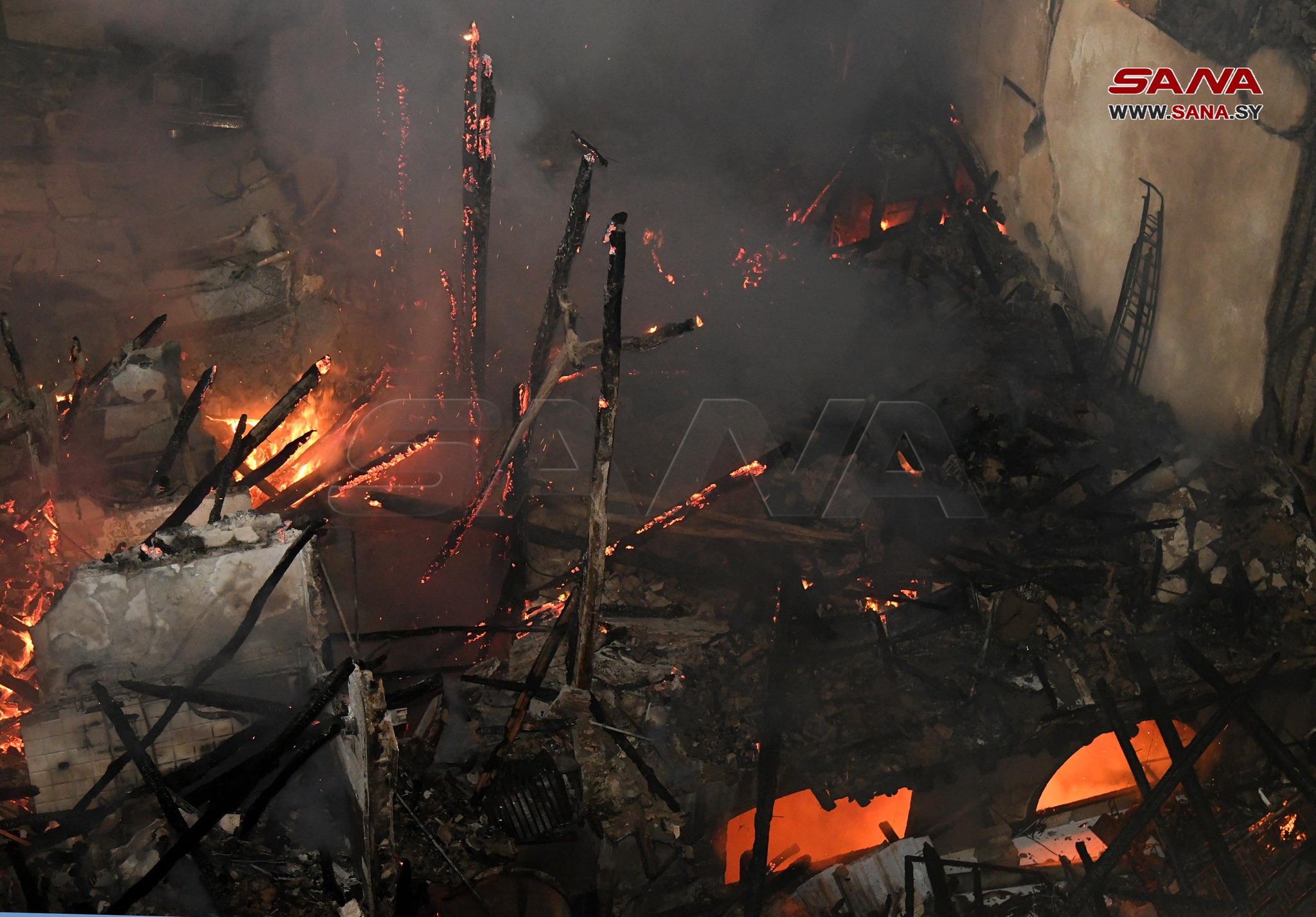 Damasco, 16 jul (SANA) Enorme incendio se produjo hoy en casas antiguas en el barrio de Amara de la capital Damasco.