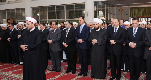 El presidente Bashar al-Assad, efectuó el rezo de Eid al-Adha en la mezquita Adel en la capital Damasco.