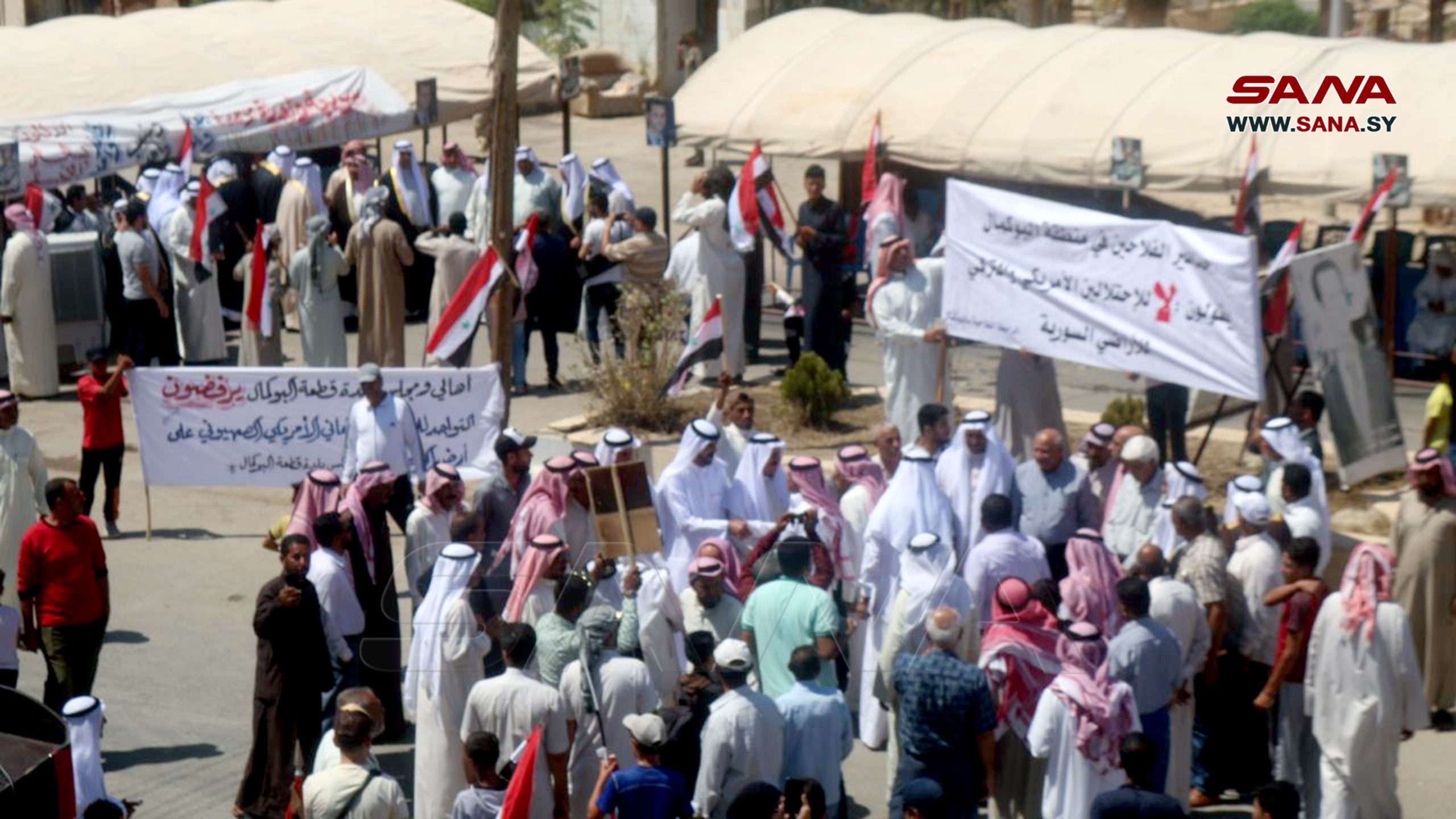 Deir Ezzor, 24 jul (SANA) Los residentes de la ciudad de Albukamal en la provincia oriental de Deir Ezzor, protestaron hoy contra la presencia de las fuerzas de ocupación estadounidenses.