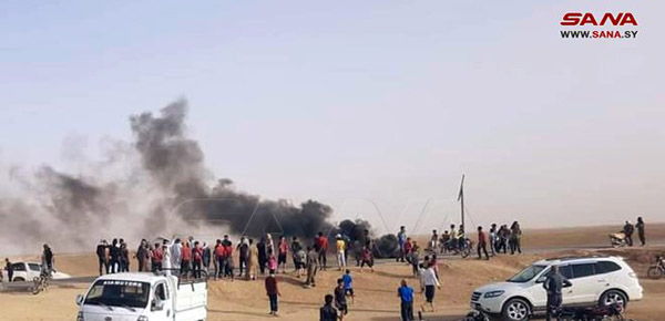 Activistas locales reportaron a SANA que residentes de la aldea de al-Hamr situada en el distrito de al-Hol bloqueó la carretera de Hasakeh/ al-Hol con neumáticos incendiados, para denunciar las prácticas criminales de la milicia contra ellos, especialmente el continuo secuestro de los jóvenes y el robo de cosechas agrícolas y bienes.