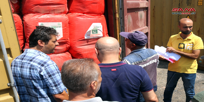 Latakia, 6 ago (SANA) Un lote de ayuda paquistaní llegó este domingo al puerto de Latakia para apoyar a los afectados por el terremoto que azotó la ciudad en febrero pasado.
