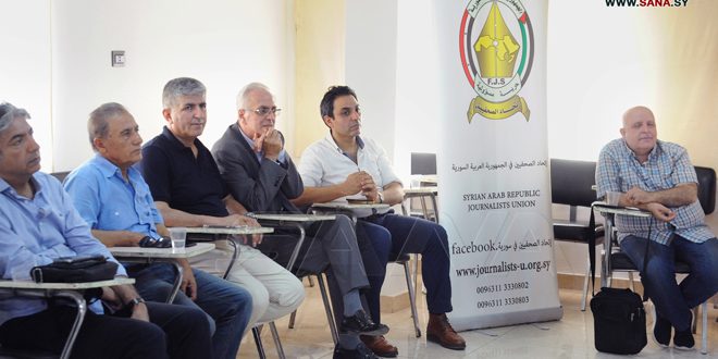El jefe de la Unión de Periodistas, Musa Abdel Nour, reiteró el apego de los periodistas a los nobles objetivos y principios patrióticos, y resaltó sus destacados esfuerzos durante la guerra terrorista en la que cayeron decenas de periodistas durante su cobertura, el último fue el corresponsal del canal Sama TV, Firas Al-Ahmad.