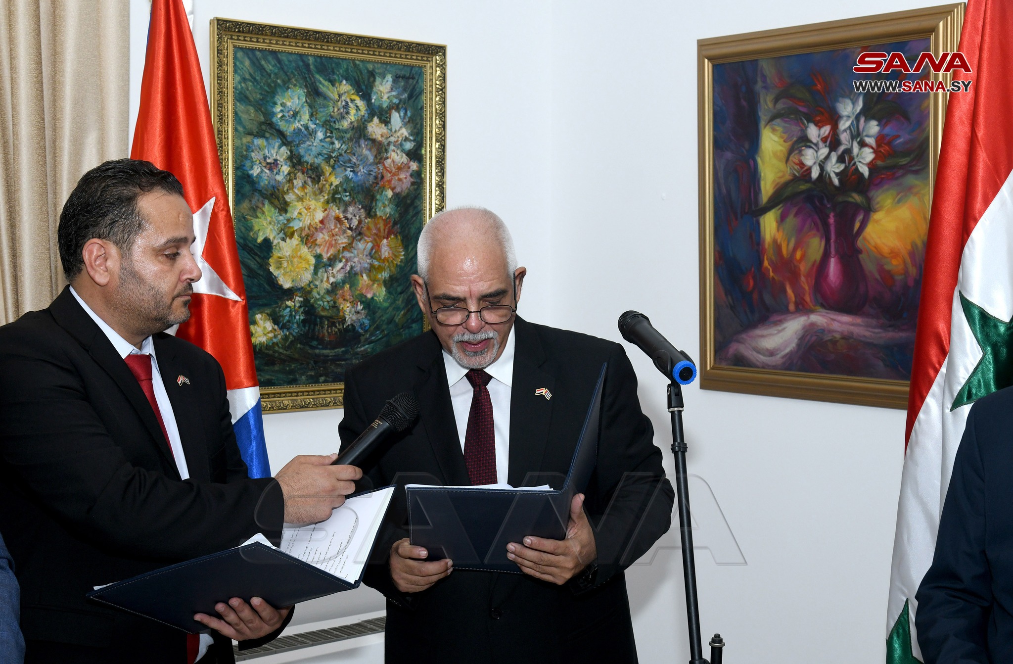 Al acto, asistieron los ministros de Economía y Comercio Exterior, Muhammad Samer Al-Khalil, el ministro de Salud, Hassan Al-Ghobash, el ministro de Estado para Asuntos de la Asamblea del Pueblo, Ahmed Postaji, varios diputados, directores de departamentos en el Ministerio de Asuntos Exteriores, embajadores y representantes de misiones diplomáticas acreditadas en Siria, líderes y representantes de fuerzas palestinas, y el jefe de la Asociación de Amistad Sirio-Cubana.