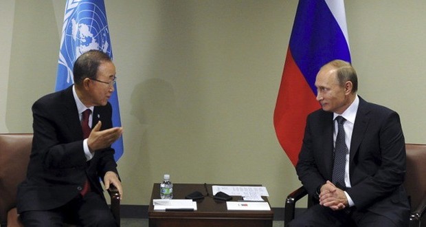 En una reunión con el secretario general de la ONU, Ban Ki-moon, Putin dijo:”esperamos que podamos encontrar un punto de encuentro con nuestros socios en los países árabes, Turquía, Estados Unidos y los países europeos con respecto a los casos más graves en el mundo, a su frente la guerra contra el terrorismo”.