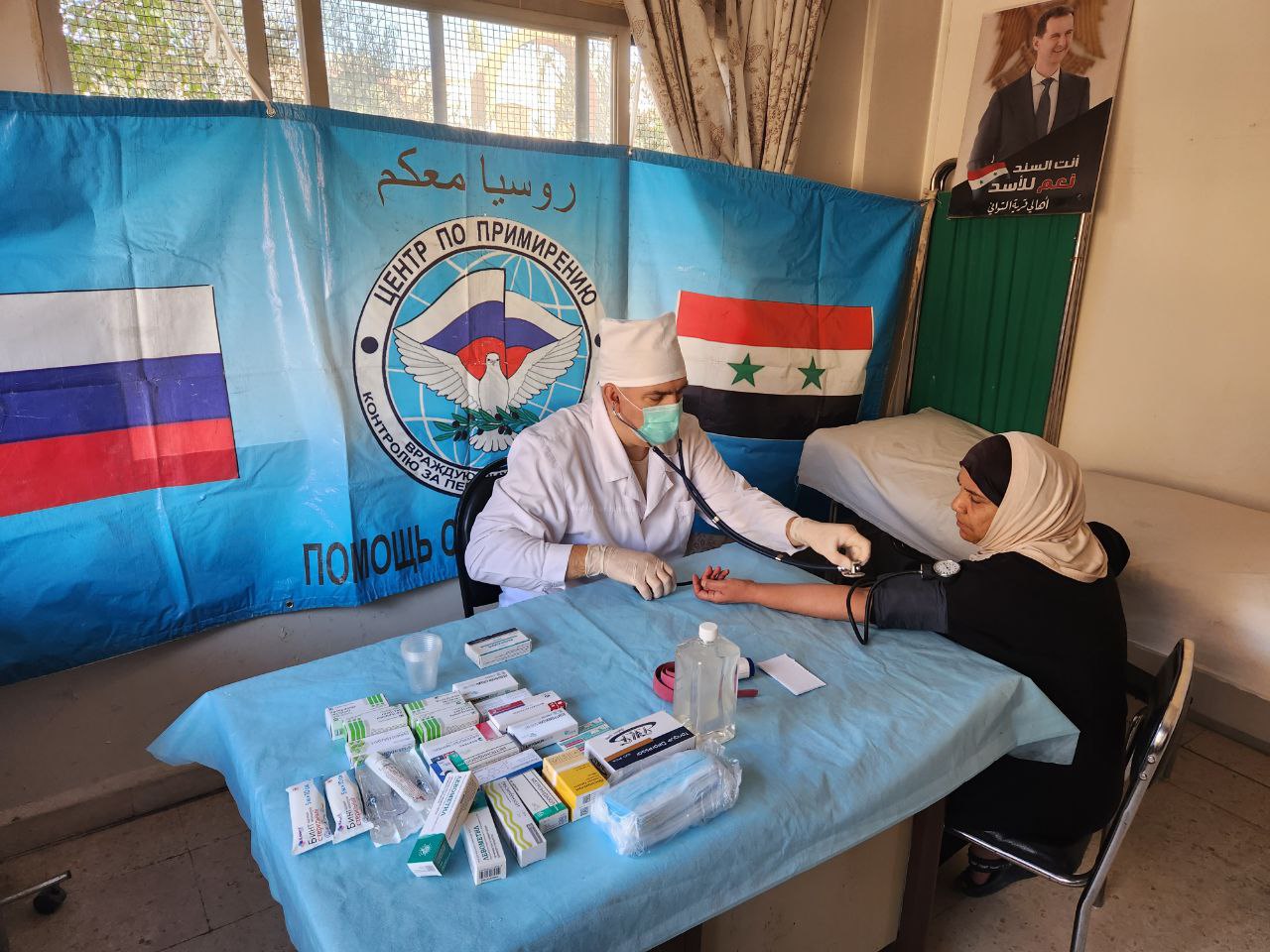 En el marco de la acción humanitaria, los médicos militares rusos hicieron exámenes médicos a la población local y les ofrecieron medicamentos necesarios.
