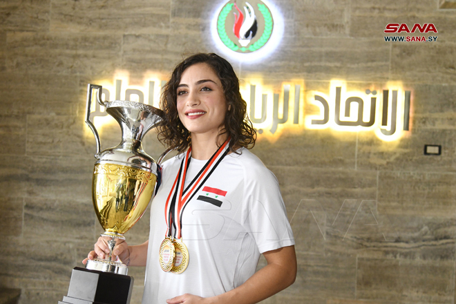 El equipo sirio ganó nueve medallas (cinco de oro, dos de plata y dos de bronce) en el Campeonato Árabe, y ocupó el primer lugar del mundo árabe en la categoría femenina y el tercer lugar en la clasificación general.