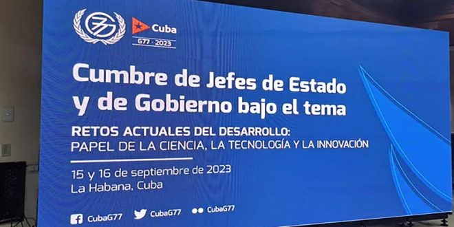 La Habana, 15 sep (SANA) La Cumbre del Grupo de los 77 y China, convocada por Cuba, comienza hoy en La Habana, enfocada en los retos actuales del desarrollo: Papel de la ciencia, la tecnología y la innovación.