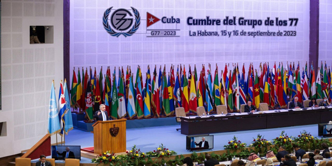La Habana, 17 sep (SANA) Desde Cuba y hacia el mundo, los países del G77 y China protagonizaron una cumbre histórica, en la cual lanzaron un mensaje de unidad a aquellos que hoy pretender seguir imponiendo reglas.
