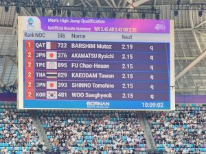 Hangzhou, 02 oct (SANA) El atleta sirio Majd Eddin Ghazal, se clasificó para la ronda final del torneo de salto de altura de las competiciones de atletismo de los XIX Juegos Asiáticos, celebrados en la ciudad china, Hangzhou.