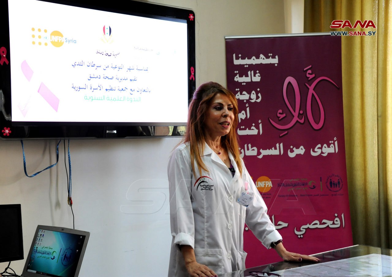 Damasco, 4 oct (SANA) Las actividdaes de la campaña nacional para detección precoz del cáncer de mama continúan en todas las provincias del país, y este año se realizan bajo el lema “Detección temprana,seguridad y tranquilidad”.