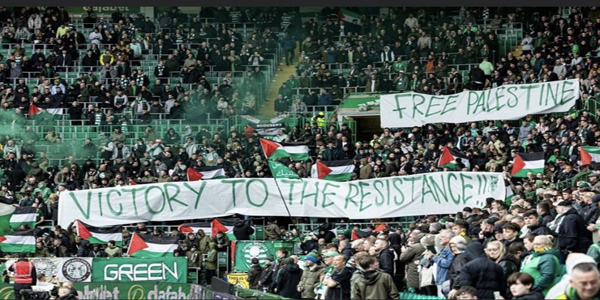 En Europa, los fans del club escocés Celtic declararon levantaron pancartas con las frases: “Libertad para Palestina” y “Victoria para la resistencia” en el juego del conjunto ante el Kilmarnock.