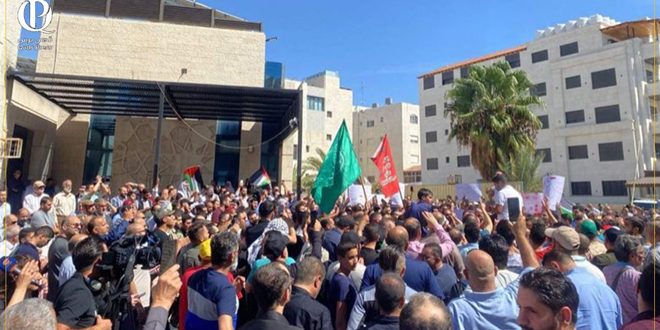 La agencia jordana Petra informó que los manifestantes izaron banderas palestinas y pancartas en apoyo a la operación “Diluvio de Al Aqsa” lanzada por la resistencia palestina.