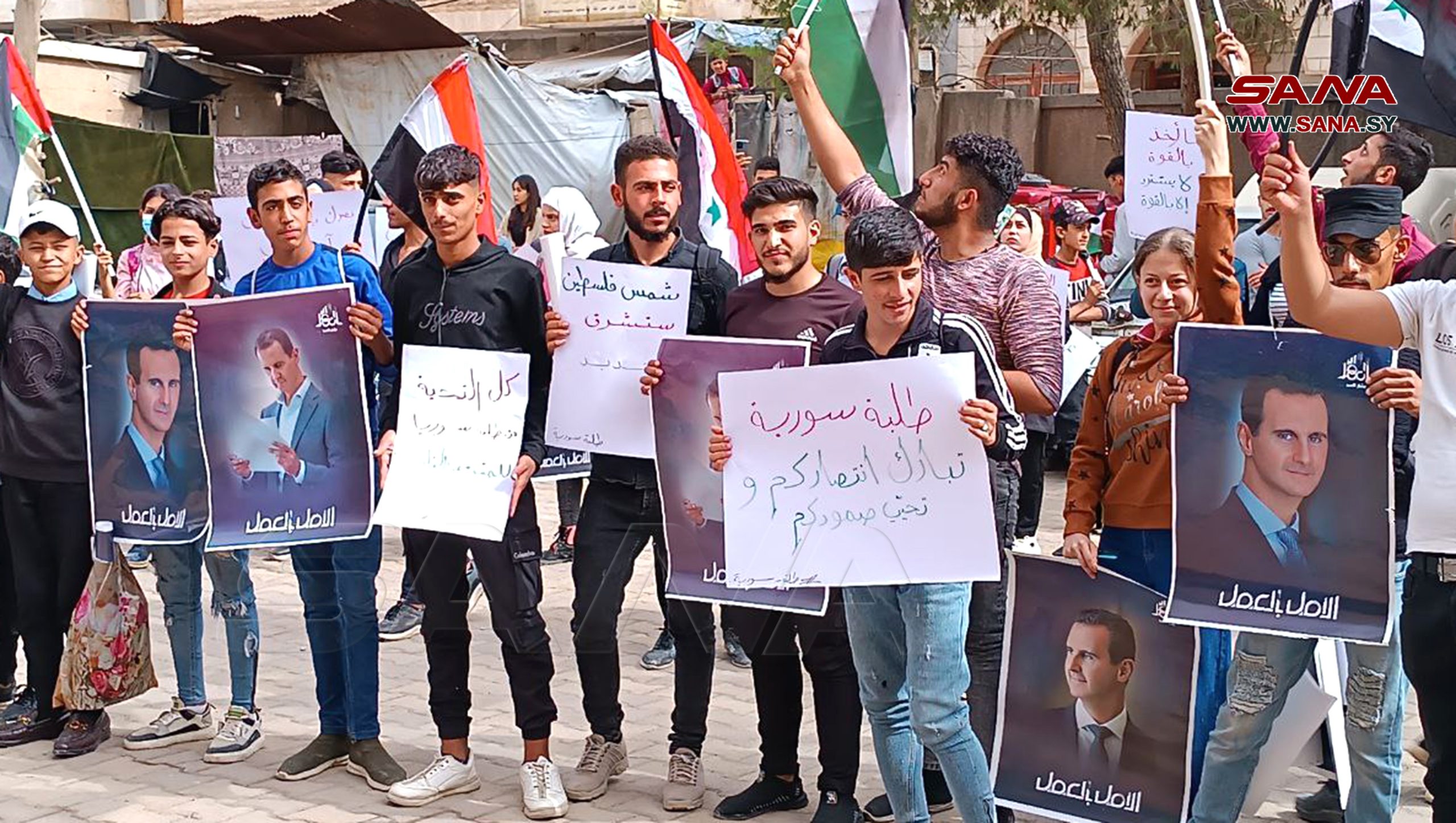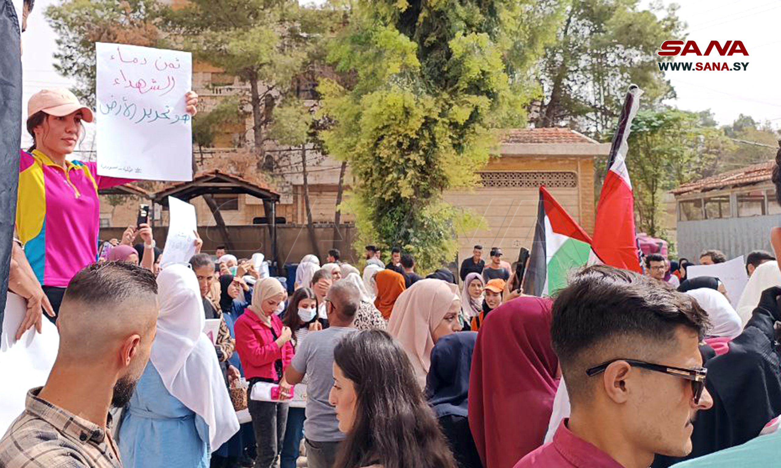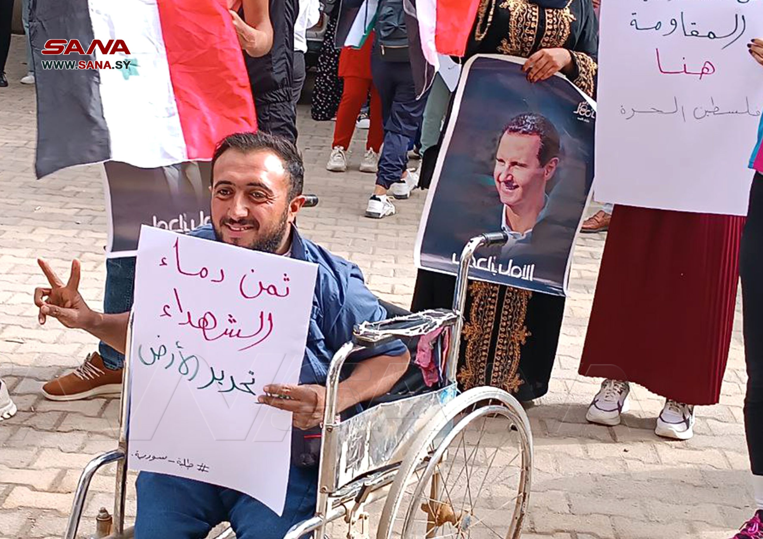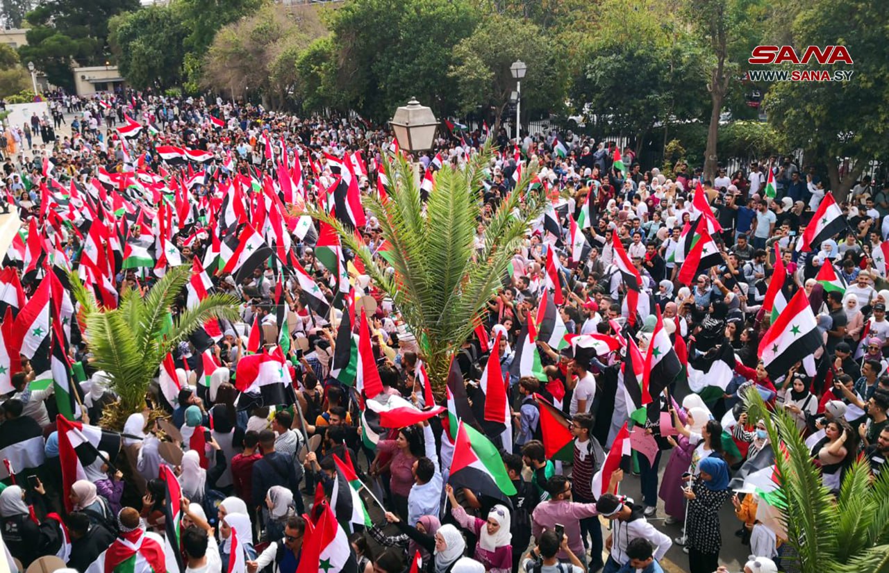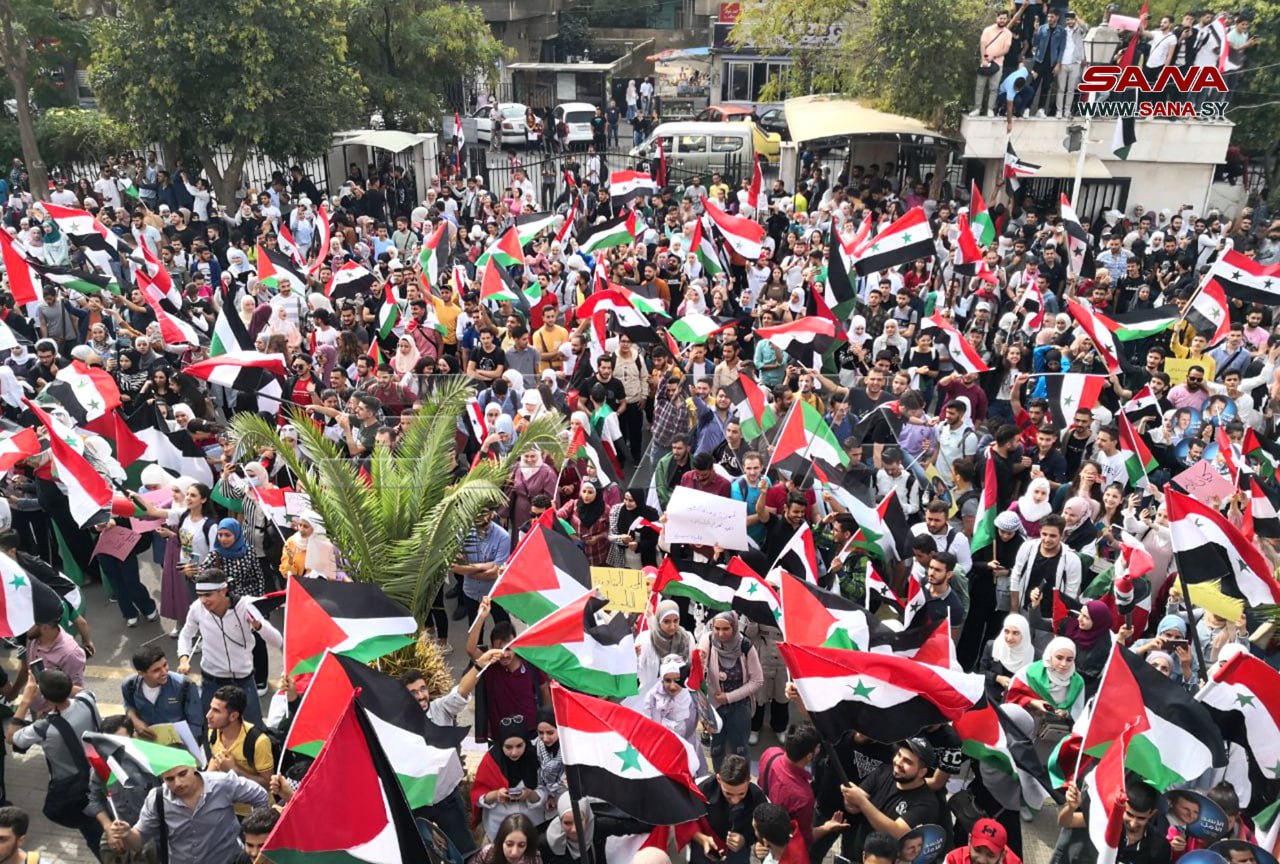 Damasco, 11 oct (SANA) Miles de estudiantes universitarios sirios salieron a protestar contra la brutalidad israelí contra el pueblo palestino y para expresar el apoyo a la resistencia palestina y su Operación “Diluvio de Al-Aqsa”.