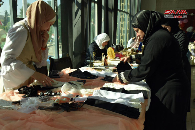Alepo, 26 oct (SANA) Un grupo de mujeres de Alepo organizaron una feria bajo el lema de “Creatividad de Mujeres Sirias”, en la Facultad de Medicina en Universidad de Alepo.
