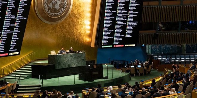 Nueva York , 28 oct (SANA) La Asamblea General de las Naciones Unidas aprobó la víspera una resolución que insta a un alto el fuego humanitario inmediato y sostenible, así como al cese de las hostilidades en la Franja de Gaza.