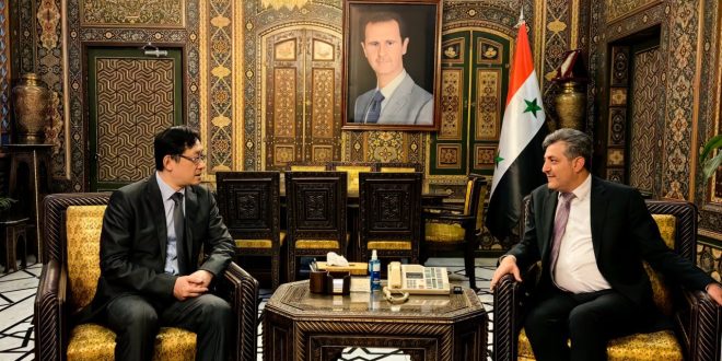 Damasco, 13 nov (SANA) El gobernador de Damasco, Muhammad Tariq Krishati, repasó con el embajador de la República Popular China en Damasco, Shi Hongwei, las formas para impulsar las relaciones de cooperación en los campos económico, de inversión, transporte, energías renovables e infraestructura.