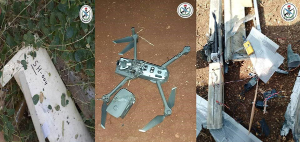 Uno de los vehículos aéreos no tripulados derribados en la localidad de Jurin, en el norte de Hama, estaba equipado con un motor de cohete de combustible líquido de cuatro metros de largo, y sus alas miden seis metros, y está cargado con 100 kilogramos de materiales explosivos.