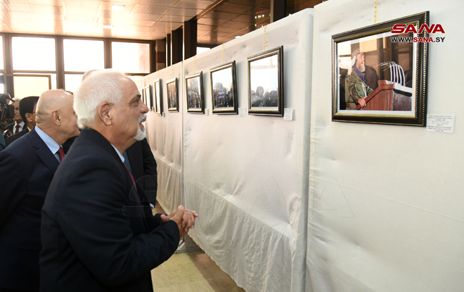 La actividad realizada en la Biblioteca Nacional Al-Assad, incluyó una exposición fotográfica que resumió los principales momentos de la vida del Líder.