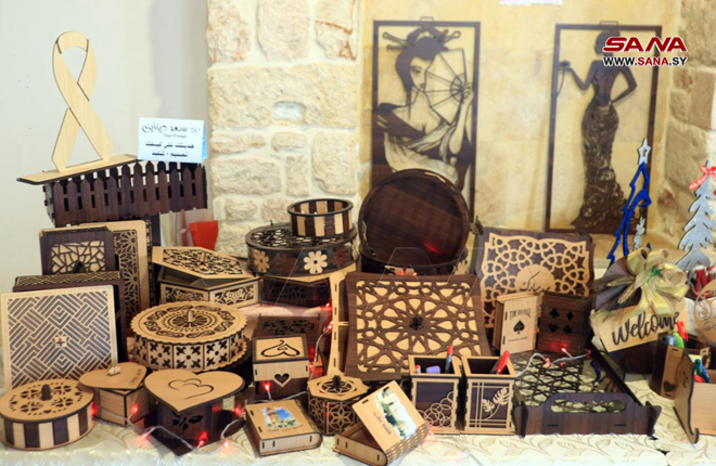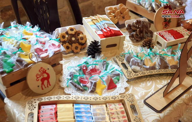 Alepo, 5 dic (SANA) Alrededor de 20 mujeres sirias de la provincia norteña siria de Alepo particiapron en un bazar organizado bajo el lema “Feria por la Vida”, en el barrio Al-Jdedeh de la capital provincial.