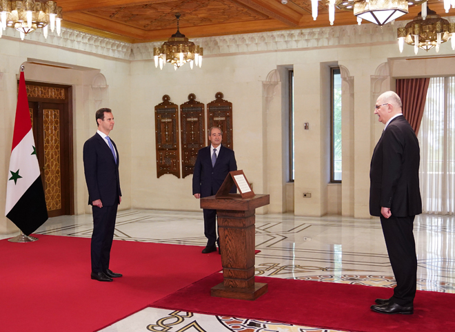 A la ceremonia de juramento asistió Faisal Al-Mekdad, ministro de Asuntos Exteriores y Expatriados de Siria.