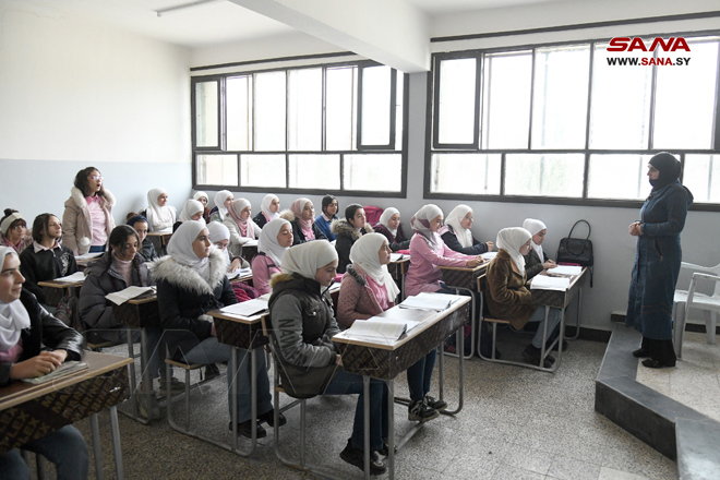 El centro escolar de tres pisos, tiene 24 aulas, dos librerías y una sala de informática, y actualmente recibe a 212 estudiantes, declaró el director de Educación de Damasco, Suleiman Al-Younis.