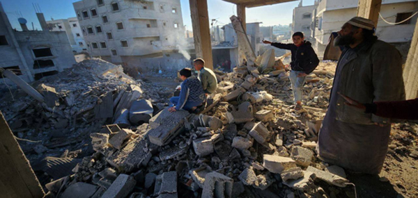 ????????Cinco muertos y decenas de heridos en bombardeo aéreo israelí contra una casa en el barrio de Al-Manara, al sur de Khan Yunis, en la Franja de Gaza